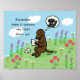 Chocolate Labrador e Carta Alguém se preocupa com Poster para os fãs de Labrador! O Chocolate Labrador está lendo uma carta de seu amigo em seu lugar favorito. Cartoon Labrador Retriever Dog Whimsy e engraçado criado por Naomi Ochiai do Japão.
