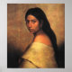 Retrato de uma jovem Choctaw que seu corpo virou para a esquerda, sua cabeça voltou para a frente, e seu olhar direcionado para o espectador. Ela veste um par de brincos e uma peça feita de pele de animal. Seu longo cabelo escuro está partido no meio e cai sobre suas costas, Petróleo na canvas, 30 x 25 pol. Pintado por P. Romer