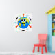 Cartoon world world wide personagem rodeada por símbolos cristãos - cruz, bíblia sagrada, pomba e símbolo de peixe.