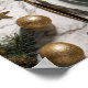 A beautifully wrapped Christmas gift box tied with a green ribbon, placed on a festive table decorated with sticks, branches, and seasonal elements. This warm and charming holiday scene captures the spirit of Christmas, making it perfect for wall art, seasonal décor, greeting designs, and home interiors.