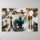 Poster Christmas Gift Box with Green Ribbon on Festive Ta