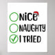 Poster Christmas Nice Naughty I Tried Christmas List Xmas