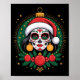 Poster Christmas Sugar Skull Art Woman Santa Hat Festive
