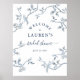Elegante e simples Padrão de aves toile francesas em ramo de árvore em azul e branco. Cartaz de Boas-vindas ao Chá de Noiva.