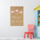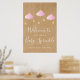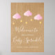 Perfeito para dar as boas-vindas a amigos e familiares em um chá de bebê especial, chá de fraldas ou chá de casal. Com nuvens cor-de-rosa fofas e estrelas douradas em cordas, em um fundo rústico kraft boho, este lindo cartão de boas-vindas é perfeito para todas as meninas bebês que estão a caminho. Criado por Thisisnotme©