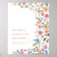 Este elegante sinal de boas-vindas certamente vai alegrar o seu evento. O design apresenta coloridas flores silvestres em aquarela misturadas com folhagens verdejantes. Use os campos de texto para personalizar o cartão com suas próprias palavras e detalhes. A cor do fundo do convite é definida como branco, mas sinta-se à vontade para escolher uma nova cor de preenchimento para combiná-lo com o tema do seu casamento. Se você quiser alterar o estilo da fonte, cor ou posicionamento do texto, basta clicar no botão "Personalizar ainda mais".