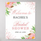 Chuva de Confeti Rosa de Rosa Floral Elegante para Chá de Noiva Placa de Boas Vindas!