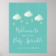 Perfeito para dar as boas-vindas a amigos e familiares em um chá de bebê especial sem distinção de gênero, ou chá de casal. Com nuvens em verde menta e estrelas douradas em cordas, em um fundo verde menta neutro, este lindo cartão de boas-vindas é perfeito para todos os pequenos que estão a caminho. Criado por Thisisnotme©