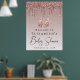Cartaz de boas-vindas personalizado e glamoroso para o seu chá de bebê com glitter rosa falso pingando em um fundo ombre em rosa ouro, uma ilustração de pés de bebê em glitter rosa e "Chá de Bebê" em um script elegante. Personalize com seu nome e data do chá.