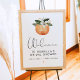 Este letreiro de boas-vindas para chá de panela de noiva apresenta uma laranja-mandarina clementina em aquarela com flores brancas em aquarela fofas e uma fonte de letra divertida. Este letreiro de boas-vindas é perfeito para o seu chá de panela ou brunch de noiva com tema cítrico ou pode ser usado para qualquer outro evento inspirado em frutas tropicais.