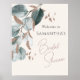 Poster Chuva de Noiva Elegante Dourado Verde Folhas Brilh
