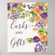 Receba os convidados com este elegante cartão de sinalização para presentes e cartões de chuva de noiva boho da primavera e do verão pintado à mão. Com vibrantes flores em aquarela roxa e laranja com folhagem exuberante, é perfeito para direcionar cartões e presentes, ao mesmo tempo em que adiciona um toque encantador à decoração da sua celebração.
