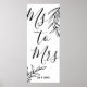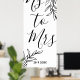 Simples design caligráfico com elementos florais preto e branco Sra será ótimo para decoração de festa de Chuva de noiva. A data do evento é editável.
