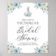 Dê as boas-vindas aos seus convidados para o seu evento com este cartaz de boas-vindas de chuva de noiva caprichoso e elegante. Ele apresenta ilustração de aquarela de uma âncora com flores azuis e brancas. Personalize adicionando um nome e outros detalhes do evento. Este cartaz de boas-vindas floral azul e branco é perfeito para chuvas de noiva de verão e inverno.