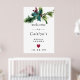 Dê as boas-vindas aos seus convidados da chuva de noivas com um design botânico de inverno festivo. Folhas de azevinho e frutas estão aninhadas em uma variedade de galhos de pinheiro. Um coração vermelho separa o texto para um toque romântico.