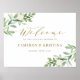 Dê boas-vindas aos convidados com este elegante sinal de boas-vindas personalizável para chuva de noivos. Ele apresenta ilustrações em aquarela de verde e flores brancas com caligrafia caprichosa. Personalize este sinal de boas-vindas para chuva de noivos em aquarela adicionando seus próprios detalhes. Este sinal de boas-vindas para chuva de noivos com verde é perfeito para eventos de primavera e inverno.