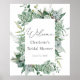 Dê as boas-vindas aos convidados para o seu chá de noiva com este lindo cartaz, apresentando uma grinalda de eucalipto e folhagens suculentas. Adicione o nome da convidada de honra, data e texto de boas-vindas personalizado usando os campos fornecidos.