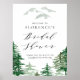 Placa de boas-vindas de chuveiro de noiva com tema floresta com árvores e montanhas em aquarela verde. Esta placa de boas-vindas caprichosa é perfeita para chuveiros de noiva na primavera, outono e inverno. Também será perfeita para casamentos com tema floresta e mata. Itens combinando estão disponíveis.