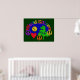 Um design de arco-íris colorido de símbolos de paz para protestar contra a guerra, uma árvore e o sol para salvar os recursos do planeta, e um coração para amar umas às outras gravatas nas palavras: "Cidadão do Mundo."