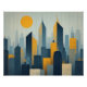 Esta peça de arte digital retrata a cidade em pleno sol. Uma exibição da grandiosidade da arquitetura pairando alto no céu, as cores nesta peça de arte fornecem alto contraste entre azuis e amarelos brilhantemente luminosos e funcionam bem em qualquer espaço de escritório. Se você é alguém que mora em um condomínio na área central da cidade, isso funcionaria muito bem. Mas eu digo que você pode exibir isso em qualquer cômodo se estiver procurando algo brilhante e um lugar para escapar.