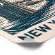 Esta ilustração da cidade de Nova York captura a Ponte do Brooklyn que leva à majestosa linha do horizonte de Manhattan, um dos mais famosos marcos americanos e vistas icônicas da metrópole urbana. Criada num estilo retrô de cartaz de viagem vintage, o design combina linhas gráficas ousadas, detalhes minimalistas limpos e caráter moderno de meados do século com a aparência texturizada da clássica gravura de linóleo.