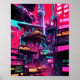 Poster Cidade distópica sunset - Ilustração de tinta neon