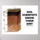Mostre um humor científico educacional intenso com este poster com as diferentes camadas de solo (horizontes), junto com o duplo entorno linguístico-bochecho dizendo "Os Cientistas do Solo Conhecem Sua Sujeira". Poster de atitude científica memorável para aqueles que trabalham com e no solo! Faça os outros se perguntarem exatamente o que você quer dizer!