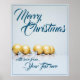 Poster Cinco bolas de natal de ouro - escrevendo azul