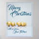 Poster Cinco bolas de natal de ouro - escrevendo azul