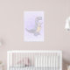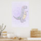 Poster com uma ilustração fofinha com um dinossauro roxo cinza.