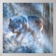 No fundo da estação dos Invernos, um Lobo Cinza do Alasca vem de trás de um pinheiro pronto para o que a vida traz adiante, como um Espírito do Lobo dos viagens de inverno junto com seu Irmão.