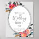 Esta moderna cinza de boas-vindas da flor de inverno da poster é perfeita para um casamento elegante. O design apresenta um buquê floral de pedras de coral, cor-de-rosa e pêssego em uma cinza prateada. Personalize o poster com o nome da noiva e do noivo, e a data e o local do casamento.