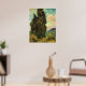 Ciprestes de Vincent van Gogh é uma pintura típica da paisagem apos impressionismo de arte. Árvores ciprestes em um campo, nuvens brancas e peludas no céu azul de verão e uma fenda de lua crescente. Sobre o artista: Vincent Willem van Gogh (1853-1890) foi um dos mais famosos pintores Post Impressionistas de sua era. Seu trabalho foi muito notável por sua beleza áspera, honestidade emocional e cor ousada.