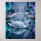 Um cisne de circuito gracioso desliza por um canal futurista reflexivo, criado a partir de penas de liga polida, tracerias luminosas e contornos fluídos luminosos. O seu arco de pescoço elegante, postura serena e tons de branco pérola, ciano, prata e violeta cintilantes criam uma peça central visual luxuosa. Pontes elegantes, árvores luminosas, drones-lanterna, reflexos da linha do horizonte, névoa suave e água neon ondulante completam o cenário pacífico. Este design de cisne premium combina romance, tecnologia e sofisticação, perfeito para interiores modernos, quartos, escritórios e presentes para amantes de pássaros.