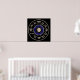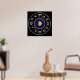 Círculo muito clássico dos signos do Zodíaco e centrado no meio do sol, lua e estrelas. Faz um presente excelente para aqueles que seguem os Horoscópios. Vestir a sala com um poster ou mostrar o círculo em camisas, canecas, adesivos, etc.