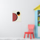 Uma design geométrica de arte moderna de círculos e semicírculos em cores castanho, laranja e preto sobre fundo creme claro.