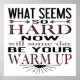 Espantoso e moderno, esta citação é desenhada usando tipografia gráfica ousada. A citação diz "O que parece ser duro agora será um dia seu aquecimento" e é impressa a preto com acentos de vermelho e rosa. Apenas as palavras para inspirá-lo a trabalhar mais e motivá-lo para o seu objetivo.