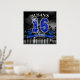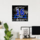 This classy poster design features a giant, blue faux-glitter '16' and ribbon over a black and white photograph of a bright city skyline reflected on water. Add your birthday celebrant's name to personalize using the easy template provided.