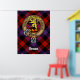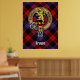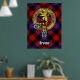 Crachá da crista Clan Brown rodeado por uma correia e fivela sobre fundo tartano. Custom Text.