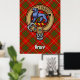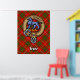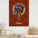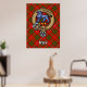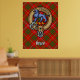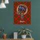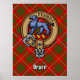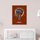 Crachá da crista azul-clã rodeado por uma precinta e fivela sobre fundo de tartã. Custom Text.