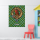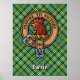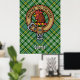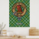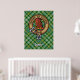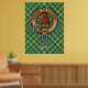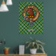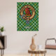 Crachá da crista de galo Clan Currie rodeado por uma correia e fivela sobre fundo tartano. Custom Text.
