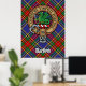 Crachá da crista Clan MacBeth cercado por uma correia e fivela sobre fundo tartano. Texto personalizado.