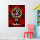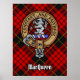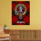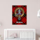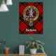 Crachá da crista do Clan MacQueen cercado por uma pulseira e fivela sobre fundo de tartã. Custom Text.