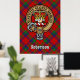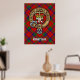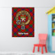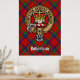 Crachá da crista Clan Robertson cercado por uma correia e fivela sobre fundo tartano. Custom Text.