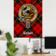 Crachá da crista Clan Wallace rodeado por uma correia e fivela sobre fundo tartano. Texto personalizado.