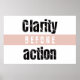 Este cartaz de citação minimalista horizontal apresenta a frase "Clareza Antes da Ação" em tipografia preta limpa sobre um fundo branco. O formato paisagem o torna ideal para acima de escrivaninhas, camas ou áreas de prateleiras, adicionando motivação sutil sem sobrecarregar seu espaço.