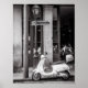 Este é um poster vintage clássico de um patinete italiano Vintage na França, um patinete preto e branco clássico, um design retrô italiano. O patinete foi fotografado em Paris, França