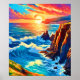 Testemunhem um pôr do sol que respira sobre penhascos dramáticos. Esta imagem captura o brilho de ouro hora no oceano e na costa. Descubra esta visualização impressionante (Este Design Com IA). Faça a ordem hoje e encare a alegria de Comprar!