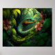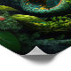 Cobra verde ilustrado nos ramos das árvores cercadas por v1ibrantes flores tropicais em uma floresta tropical.