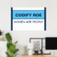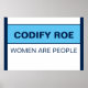 Codifique que as mulheres rosas são Pessoas. Codificar Roe deveria ser o cerne dos direitos das mulheres em matéria de saúde, não o teto. E agora mesmo isso não existe. Diga ao Congresso que é hora de eles fazerem o mínimo que podem fazer pela saúde, segurança e igualdade das mulheres, porque as mulheres são pessoas. Descrição do design: O espaço do design é um fundo branco com uma borda azul escura. Na metade superior do espaço design, as palavras "Codificar Roe" em uma fonte serif azul escura. Por baixo disso, uma larga faixa azul clara com bordas superiores e inferiores azuis escuras. Abaixo da faixa, na metade inferior da design, as palavras, "As mulheres são pessoas."